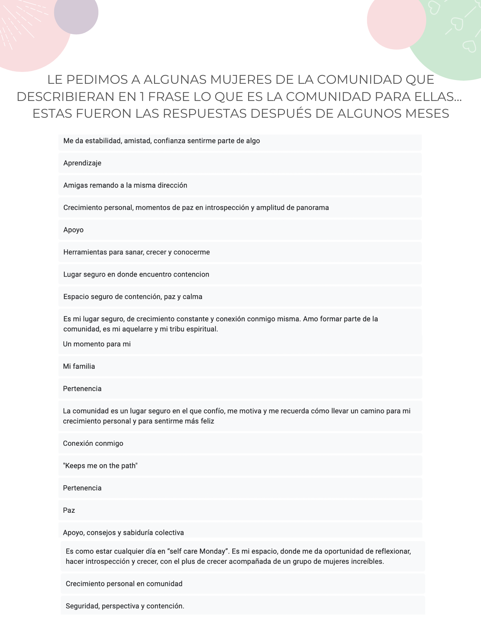 🌟 Sesiones de conexión grupal: Comparte experiencias y aprende junto a otras mujeres de la comunidad.