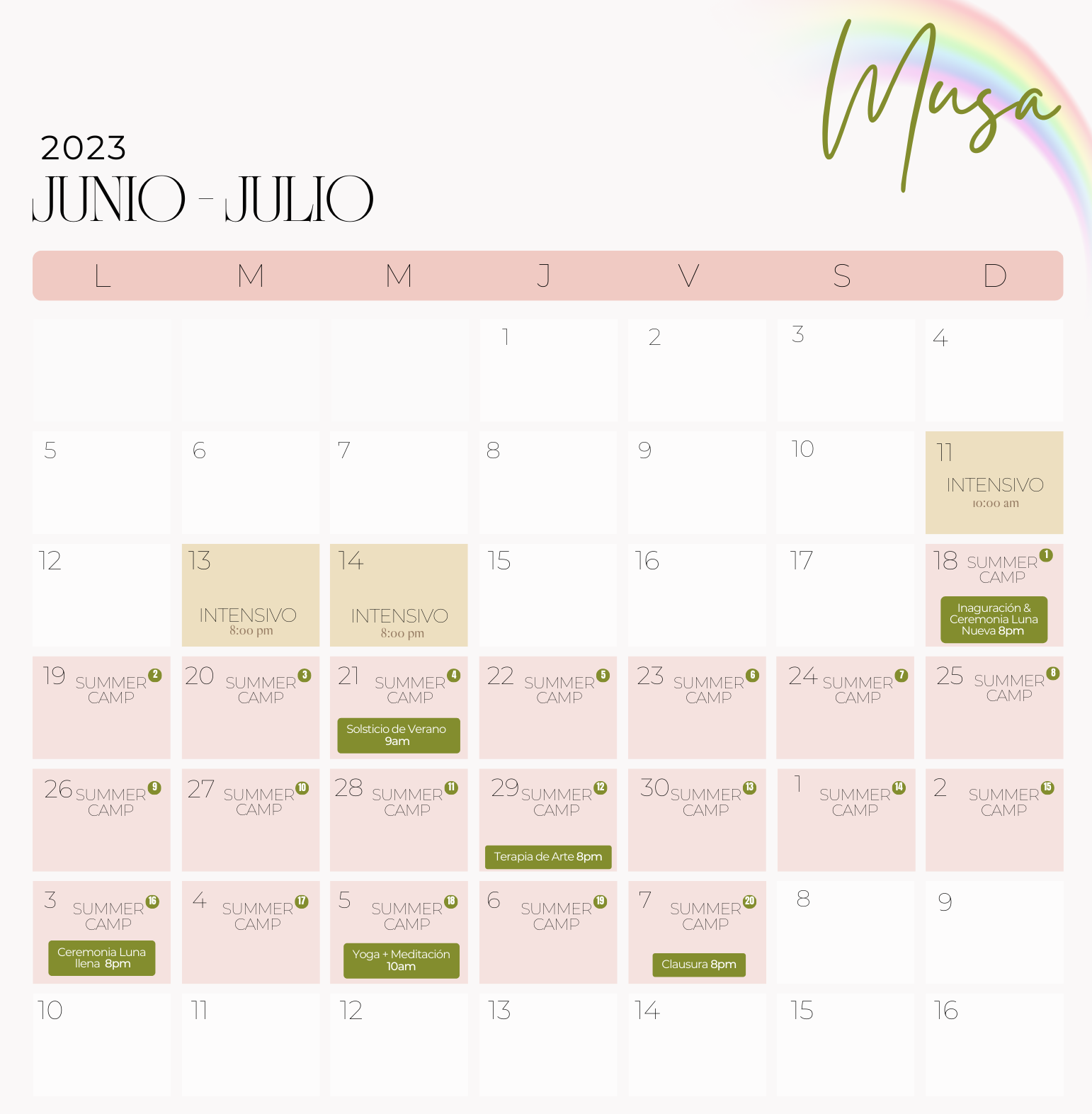 Musa te catapulta a un estado de inspiración y bienestar expansivo. Musa en su versión Summer Camp, además, se enfoca en prepararte para estar en un estado de recibir, ese estado natural de toda mujer.